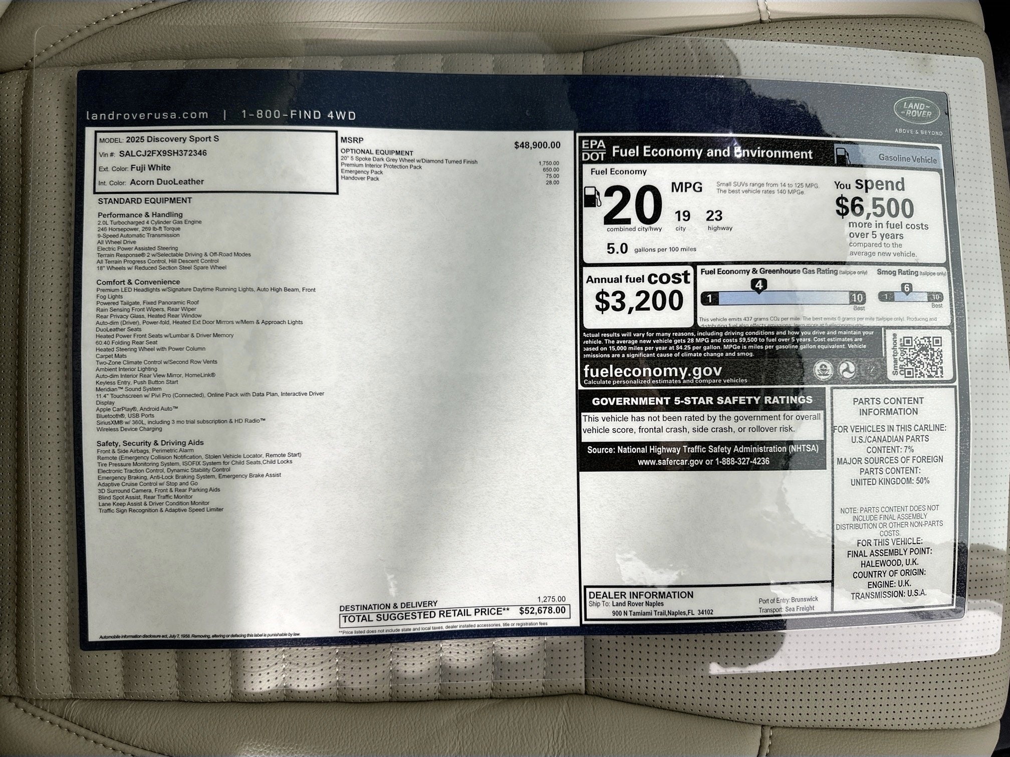 - Fuel Economy Est-Combined (MPG): 20 (Est)