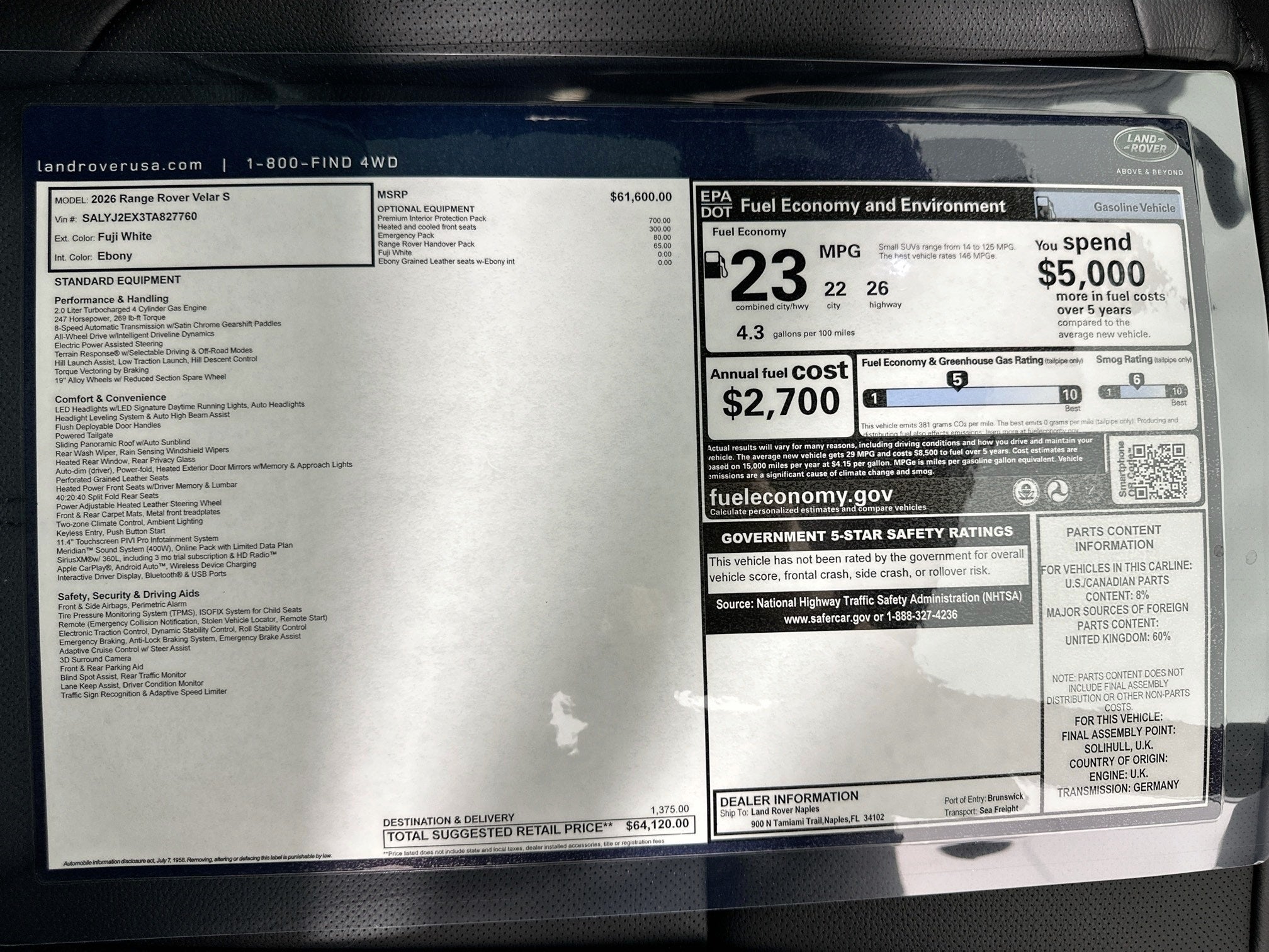 - Vehicle Name: Land Rover Range Rover Velar