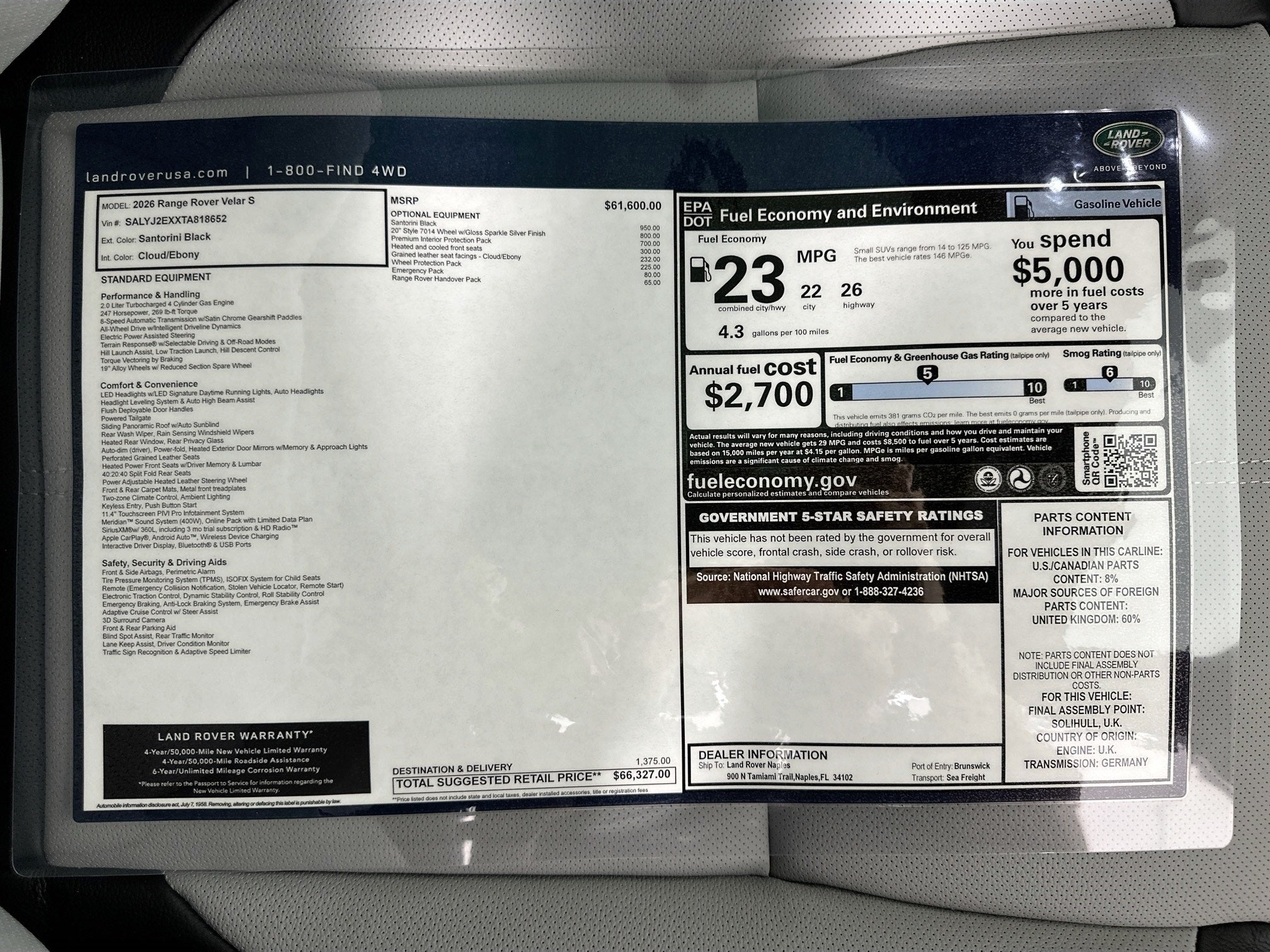 - Vehicle Name: Land Rover Range Rover Velar